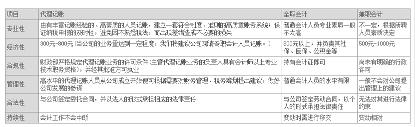 代理记账与全职会计、兼职会计的比较