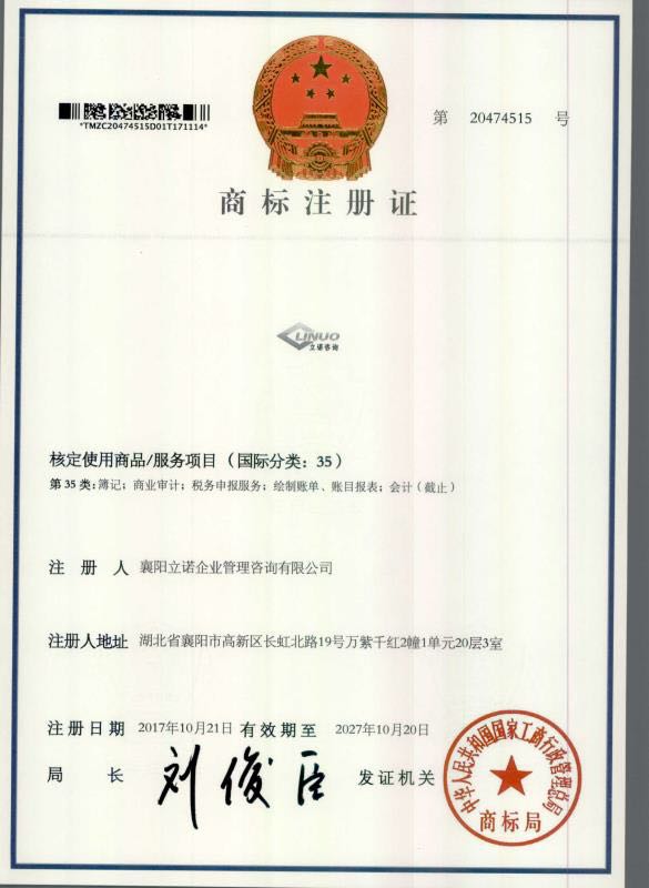 日前,收到国家商标总局批准,“立诺咨询”商标注册成功。