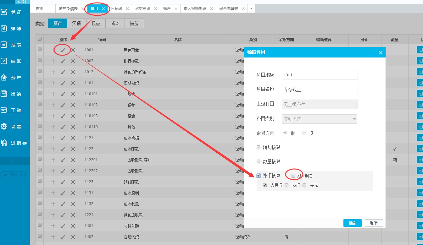 25、云会计中,在科目中设置了期末调汇,结账的时候要怎样操作,才能实现调汇操作。